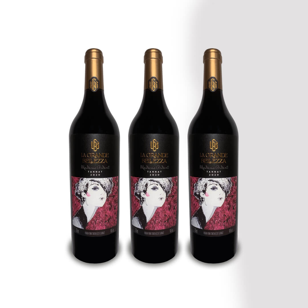 Madame densa e ardente. Possui corpo límpido, de coloração vermelho púrpura. É um vinho sedoso, longo, com aromas de ameixa passa e marmelada, marcado por notas de tostado, café e caramelo.